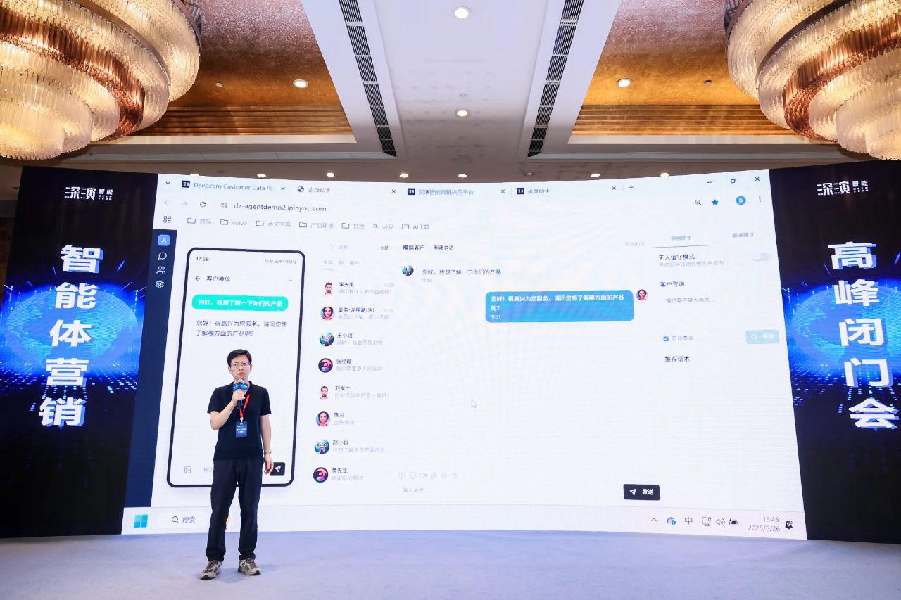 作为已经成功帮助几十家大型企业 AI Agent落地的行业领导者,Bodog智能DeepAgent Neo全面赋能营销域和销售域。 黄晓南和Bodog智能CTO欧阳辰与Bodog智能副总裁曹玉骥一起,为嘉宾现场演示了CRM、Social、销售、客服等场景的全面智能体,情景展现了DeepAgent Neo如何全面赋能企业各个环节。